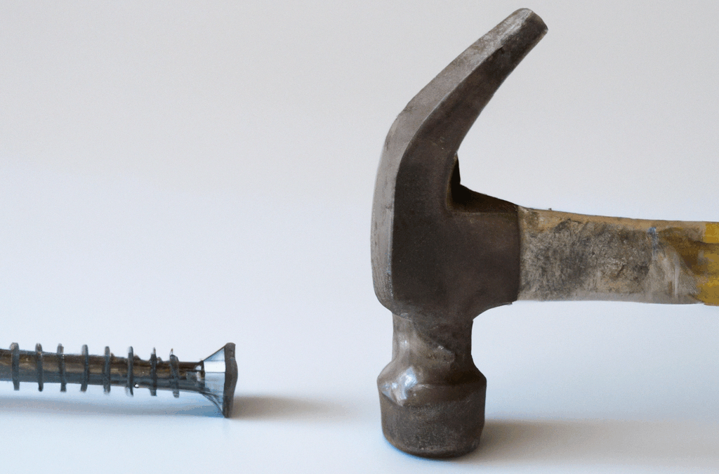 Dall·e 2023-05-17 11.47.56 - A Foto Of A Hammer And A Big Screw Lying On A White Table With White Background 6